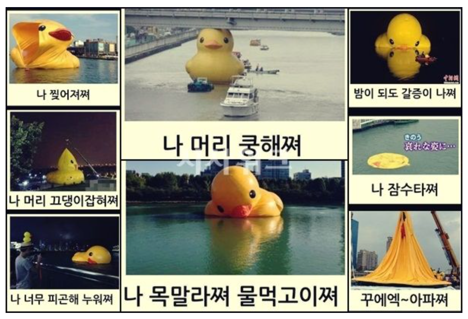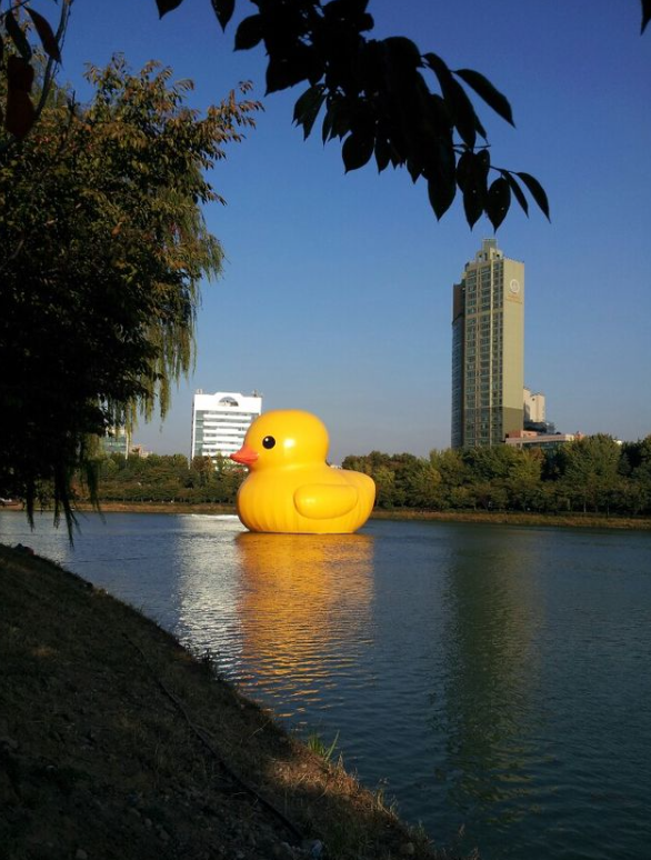 네덜란드의 예술가인 플로렌타인 호프만(Florentijn Hofman)의 설치미술로, '즐거움을 전세계에 퍼트리다 Spreading joy around the world)'라는 이름으로 2007년부터 세계 곳곳에 설치되고 있다. 말 그대로 어릴 적 욕조에 띄워 놀던 고무 오리를 거대하게 만들어 강이나 호수에 띄우는 것이다.