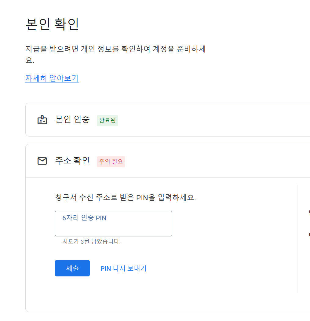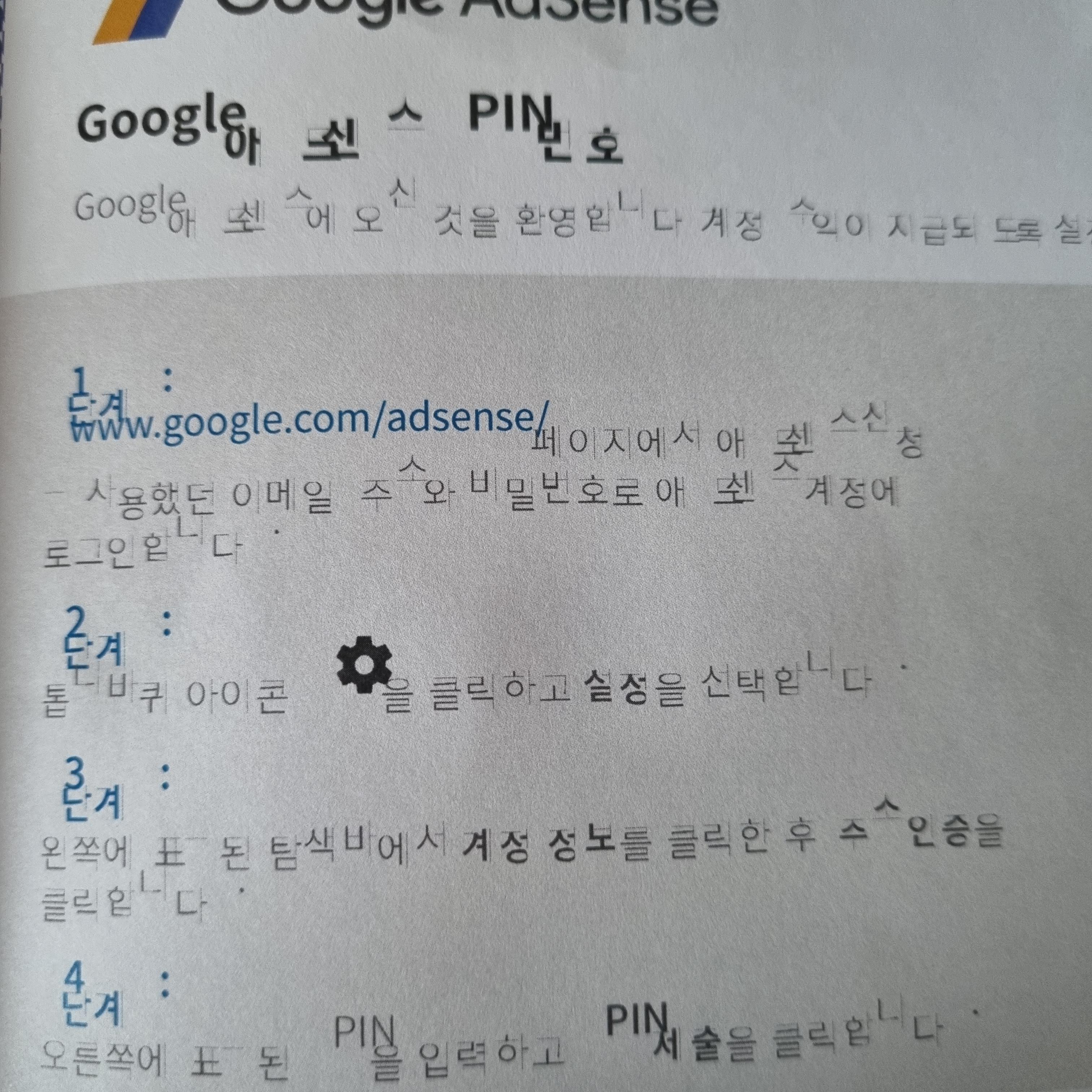 대충찢어서 안에 숫자 6자리만 보면됩니다. 구글애드센스에 접속해서 본인 확인부분에 핀번호 입력을 하세요