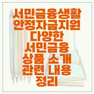서민금융 상품은 저소득층 및 신용도가 낮은 분들에게 금융적 지원을 제공하여 삶의 질을 향상시키는 역할을 합니다. 다양한 상품 중 필요한 상품을 선택하여 금융적 안정을 추구할 수 있습니다.
