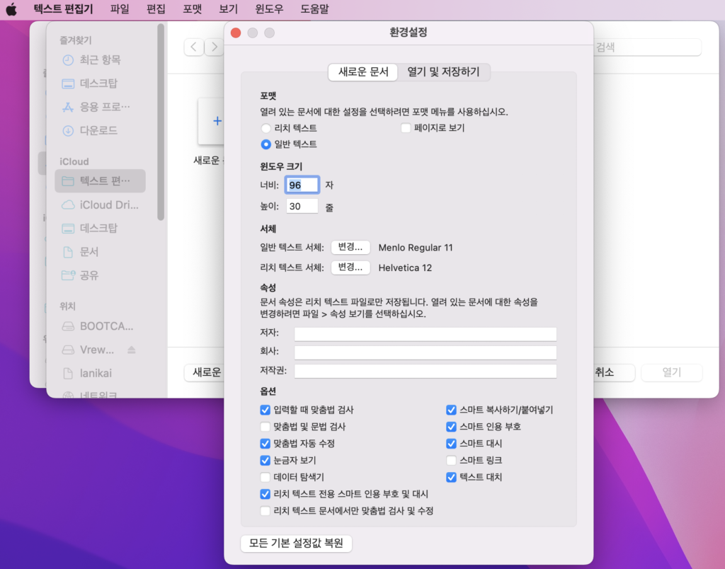 파인더에서 텍스트 편집기를 실행하세요 텍스트편집기의 환경설정을 열고 일반텍스트를 선택하세요 기본 리치텍스트 입니다. 이거설정만 바꾸고 텍스트편집기에서 작업하고 저장하면 윈도우랑 같은 txt파일이 완성됩니다.