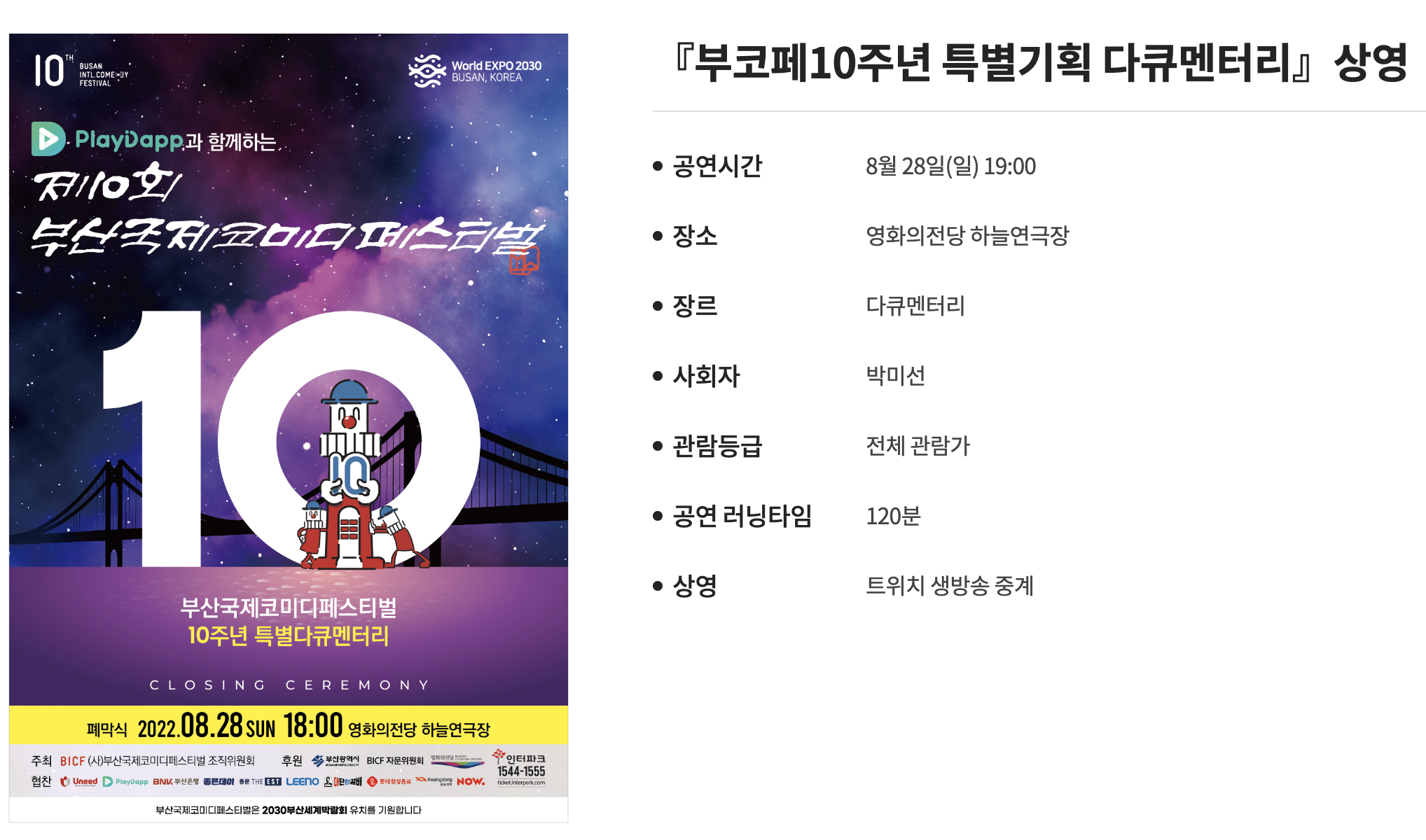 부산코미디페스티벌이 벌써 10년이나 되었군요 폐막식은 여기서