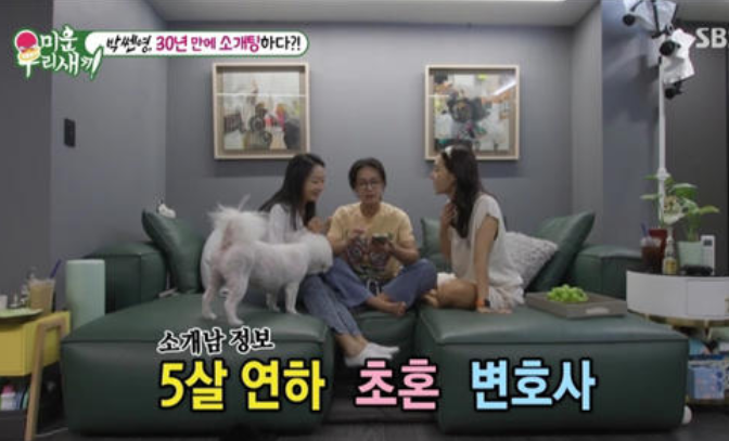 안녕하세요, 이번에는 SBS 예능 프로그램 '미운 우리 새끼’에서 방송된 배우 박선영의 소개팅 이야기를 소개해 드리겠습니다. 박선영은 결혼 정보 회사를 통해 5살 연하의 변호사와 소개팅을 하게 되었는데요, 어떤 분위기였는지 함께 살펴보시죠.