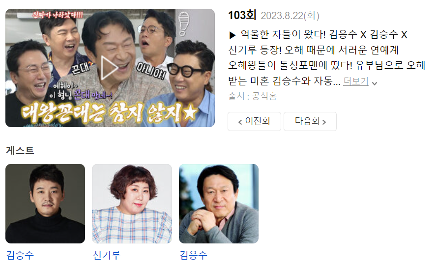 김응수, 신기루와 함께 '돌싱포맨’을 찾은 배우 김승수의 연애 일화는 22일 화요일 밤 9시 SBS '신발 벗고 돌싱포맨’에서 확인할 수 있다.