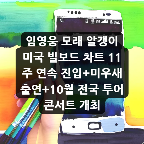 가수 임영웅이 신곡 '모래 알갱이’로 미국 빌보드 차트에 11주 연속 진입하는 기염을 토했다. 또한 예능 프로그램 '미운 우리 새끼’에 출연하고, 10월부터 전국 투어 콘서트를 개최한다는 소식을 전해 팬들의 기대감을 높였다.